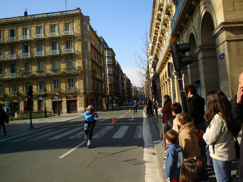 La carrerita muy bien, porq hasta el tiempo ha estado de nuestra parte...., 5 kilometros por el centro de Donosti. Y unas 40 patinadoras q salimos 5 minutos antes de las corredoras.